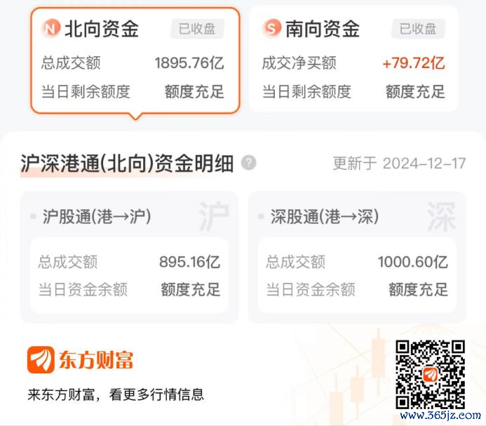 12月17日,两市震荡调整,三大指数小幅均收跌,但大小盘股走势分化,微盘股指数跌近6%。北向资金当日成交1895.76亿元,占沪深两市总成交额的12.55%。