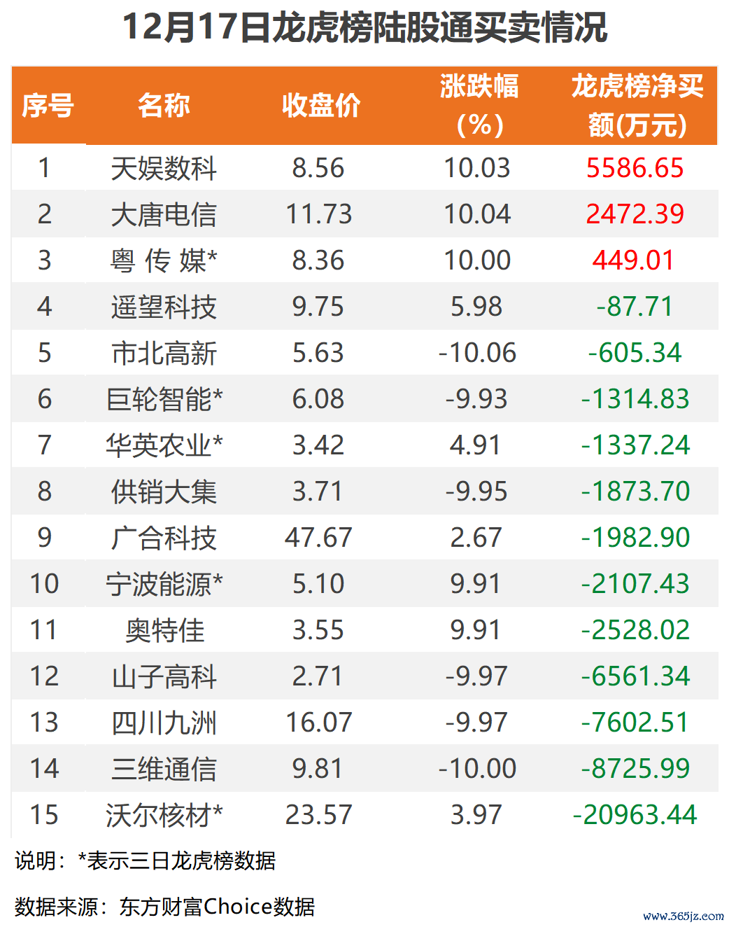 今日陆股通参与龙虎榜中个股共涉及15股,其中3股被陆股通净买入,天娱数科买入最多,净买入5586.65万元;另外12股被陆股通净卖出,沃尔核材被卖出最多股票行情 ,三日净卖出约2.1亿元。
