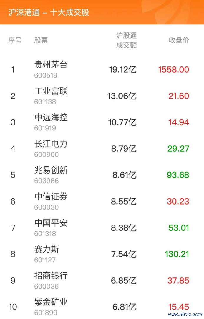 交易所公布的当日沪深港通十大成交股显示,贵州茅台、工业富联、中远海控位列沪股通前三,优质炒股平台成交额分别为19.12、13.06、10.77亿元;宁德时代、东方财富、比亚迪位列深股通前三,成交额分别为23.51、17.02、12.49亿元。